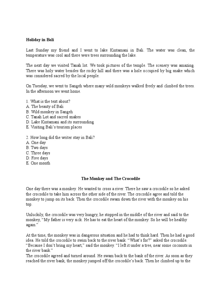 We were there for three days. Holidays at Bali 2017 recount text Here i provide an example of recount text about holidays in Bali 2017. VIIID 02 A TRIP TO PURWOKERTO last holiday I went to my parentss home in.