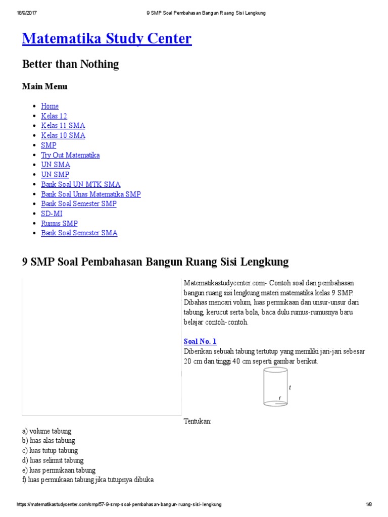 18 9 2017 9 Smp Soal Pembahasan Bangun Ruang Sisi Lengkung