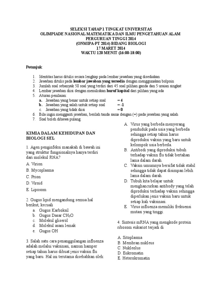 Soal Seleksi On Mipa Pt 2014 Ui